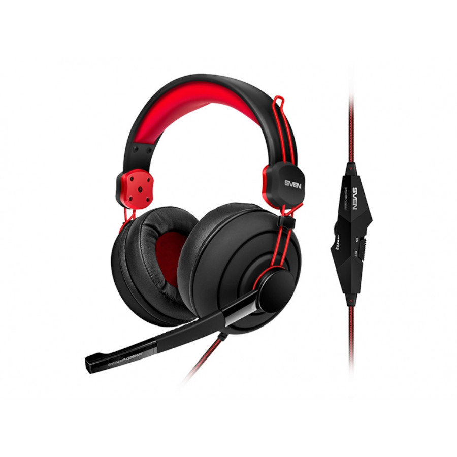 Наушники SVEN AP-G888MV, игровые с микрофоном и регулятором громкости, 2.2m, Black/Red