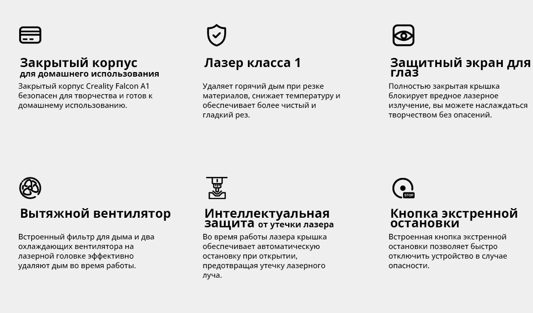 Creality Falcon A1 идеально подходит для хобби-проектов, творческих студий и образовательных учреждений, где важны безопасность, точность и удобство работы с различными материалами.